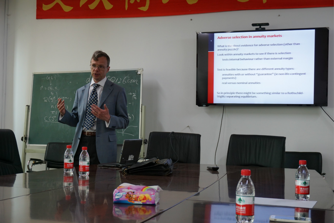 受公司beats365邀请,Bristol University资深经济学家Edmund Cannon博士于6月2日在公司南路主楼1305为公司师生做了题为“Adverse selection in the UK annuity market and the 1956 Finance Act”的学术讲座,讲座由beats365孙菁蔚老师主持。