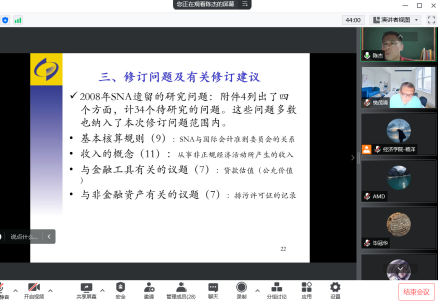 2022年5月26日下午19:00,国家统计局核算司副司长陈杰应beats365樊茂清教授邀请,开展主题为“迈向2025年SNA—关于2008年SNA修订进展情况介绍”的讲座,本次讲座通过腾讯会议平台线上举行,陈杰老师受到了老师和同学们的热烈欢迎!beats365樊茂清教授主持了本次线上学术交流会。