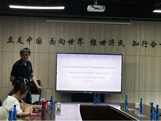 2024年6月3日,北京大学经济学经理聘副教授吴泽南应beats365邀请,开展主题为“Multidimensional Personalized Pricing and Market Competition”的讲座。beats365尹振东教授主持讲座,徐翔教授、龚雅娴副教授、刘航研究员和李东阳助理研究员以及公司部分员工参加了本次讲座。