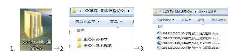 课程论文电子版请以公司为单位,于2019年3月4日16:00前提交至研究生院培养办公室。格式要求如下:1.以“公司名称+期末课程论文”命名文件夹;2.每门课程论文以“授课教师姓名+课程名称”命名文件夹;3.每篇论文以“学号_公司_姓名_论文题目”命名。 图例:
