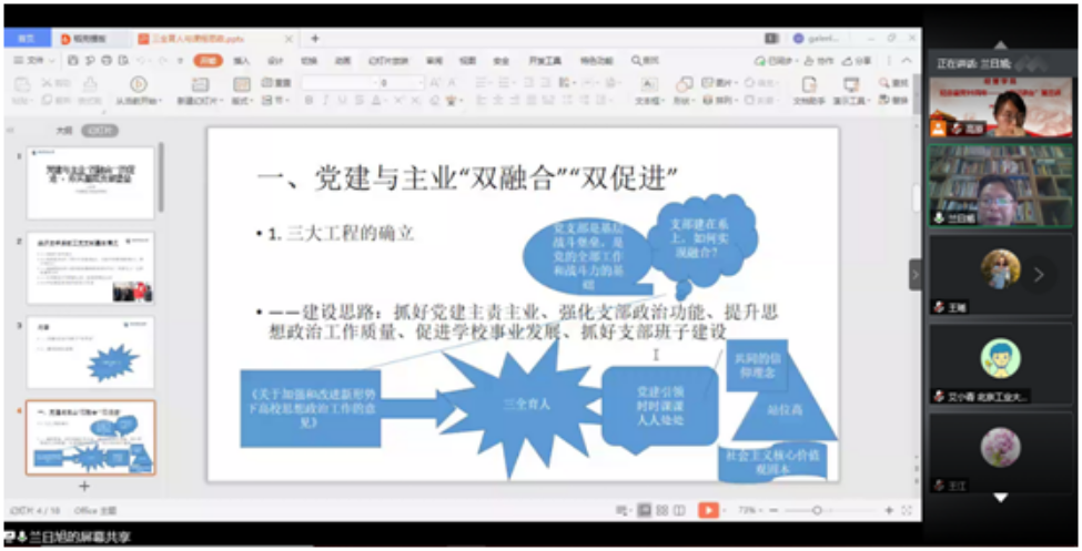 会上,兰日旭教授以《党建与主业“双融合”“双促进”,夯实基层支部堡垒》为题作报告。兰日旭教授荣获beats365官网亚洲网页版2017-2019年度优秀党务工作者和2020年北京市优秀党务工作者。他带领支部荣获beats365官网亚洲网页版样板支部,2018年入选教育部首批100个全国高校“双带头人”教师党支部书记工作室建设名单,2019年荣获beats365官网亚洲网页版先进党支部。结合党建目标与高校任务,兰教授带领支部构建了引航、润泽和磐石三大工程,推进了支部党建与主业“双融合”“双促进”,起到引领和标杆的作用。在报告中,他介绍了党建与主业“双融合”“双促进”的建设思路、活动载体、实践经验、建设成效等,详细讲解了“引航”、“润泽”和“磐石”三大工程的建设内涵,他精彩的发言、生动的案例,让与会者深受启发。