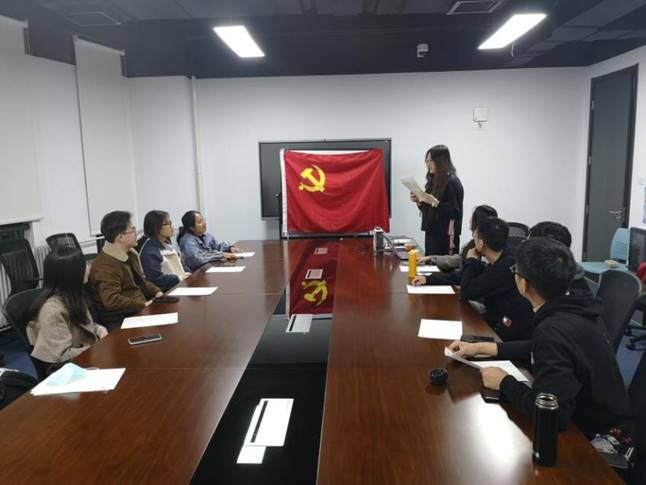 在学习部分,首先2020级硕士第三党支部书记刘钰婷从深刻认识党的十九届五中全会重要意义、我国“十三五”时期经济社会发展取得的重大成就、准确把握“十四五”时期面临的国际国内形势等几个方面进行宣讲。员工支部书记们围绕二〇三五年远景目标和“十四五”时期经济社会发展的指导思想、遵循原则、主要目标和重点任务,就如何将远景目标和“十四五”规划与党员的思想学习、个人成长结合等方面进行探讨,认真领会十九届五中全会精神。