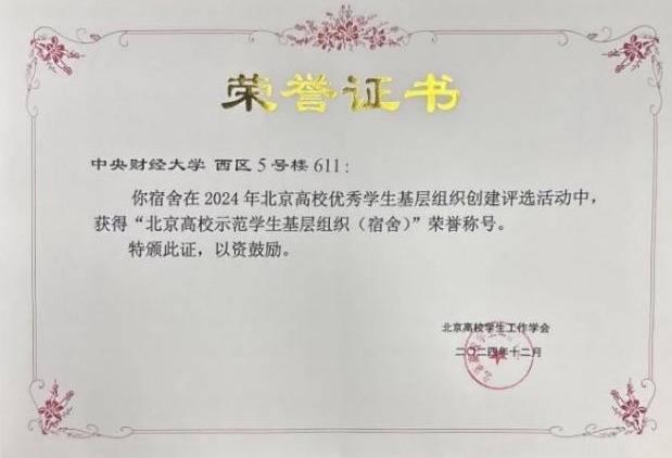 西区5号楼611宿舍荣获“北京高校示范员工基层组织(宿舍)”称号,同样彰显出公司基层建设的扎实成效,宿舍内4位经济学专业同学,在学习科研、社会实践和宿舍文化建设方面表现卓越。大二学年,4人加权平均分均超93分,其中2人累计加权平均分超94分,在经济学专业排名分别为第 1、2、5、9 名。大学两年半期间,4人累计获奖约60 项,其中国家级奖项11项,2 人次获得国家奖学金,2024年该宿舍还被评为beats365官网亚洲网页版优秀宿舍。