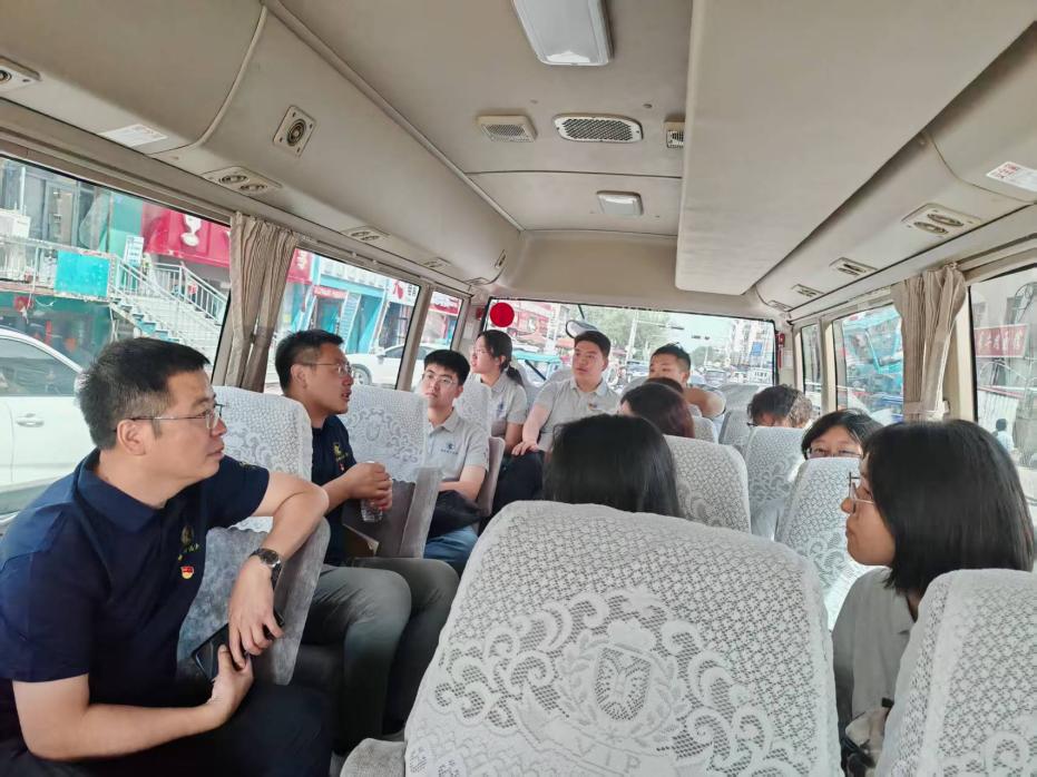 返程途中,副经理伏霖结合方才参访的明水数字经济孵化器与社区“幸福 9 号”养老服务机构,在车上为同学们即兴开讲。他围绕当前国家数字经济与银发经济的发展态势,以及产业布局的底层逻辑,将所见所感融入思考与讲解,为同学们带来了一场干货满满、别开生面的移动课堂,师生随看随思、随想随讲,高效互动,同学们纷纷表示受益匪浅。
