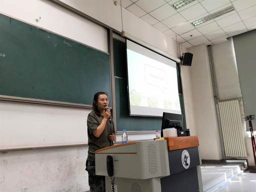 随后,李倩老师上台发言,她分享了自己在本科与优干保研中的学习和员工干部工作中的经历,结合自己的收获,告诉了同学们员工工作可以与学业相辅相成,并且对人际交往与职业发展具有重要作用。最后李倩老师鼓励各位新生积极参加研究生会,并从中收获到友谊,提升多方面的素质。