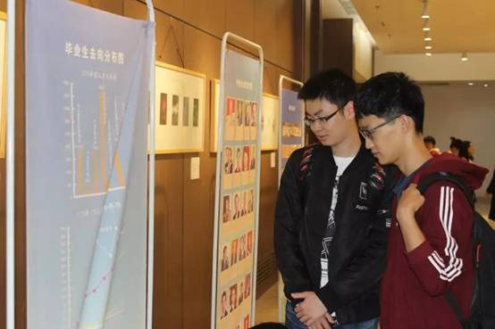 讲解期间,作为新生,更加关注于自身的发展,因而同学们纷纷停留在了团队力量、交流项目等展板前,久久凝视。