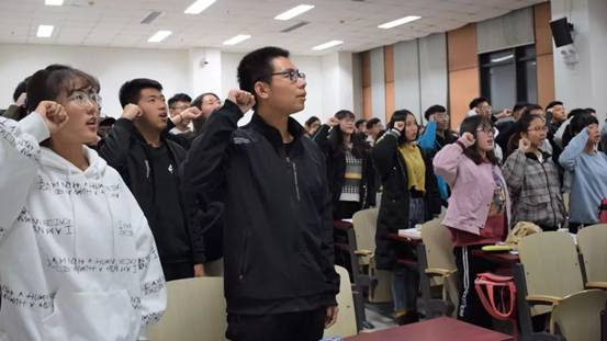在此之后,由第一团副王骏驰领誓,全体员工会成员进行了庄严的宣誓。最后,抽奖环节中由李倩老师抽出了员工会的七位锦鲤成员。