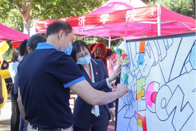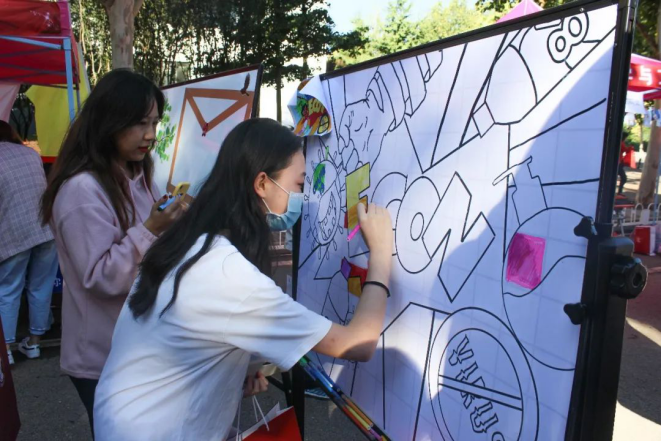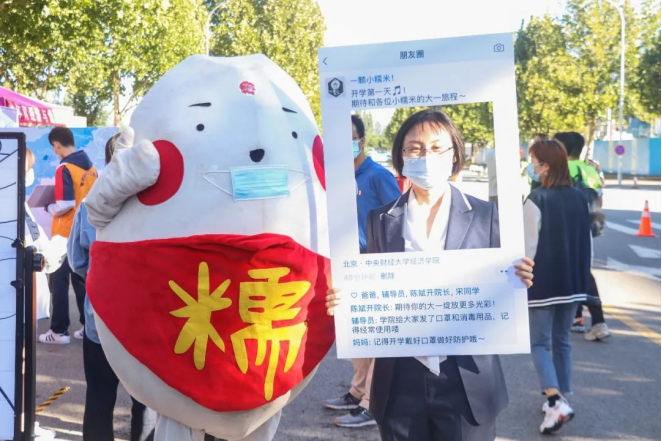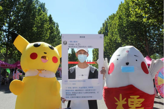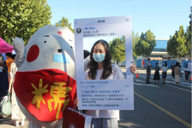 为了增强新生在特殊时期开学的归属感,公司更是精心准备了特别的环节。通过幸运转盘为新生们发放防疫物资,保障新生在校期间的防疫安全;写下自己的名字并亲手粘在信封上,寓意着为未来插上翅膀,飞向远方;用自己的创意为防疫板报添上一笔,为战疫贡献自己的力量;与经院吉祥物一颗糯米拍照留念,给自己的老员工活留下开端的纪念。