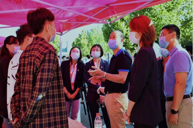 公司党委书记何秀超、副董事长史建平,副董事长朱凌云,经济公司党委书记郭冬梅,经理陈斌开、副经理伏霖、公司党委副书记耿卉、组织员刘滨、2020级本科生班主任黄乃静、何召鹏来到迎新现场,看望慰问了在场的新生和迎新工作人员,并与新生亲切互动,对他们的到来表示热烈欢迎。
