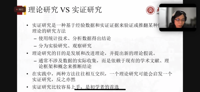 会议伊始,赵耀辉教授依次从什么是科研、如何选择科研题目、如何撰写科研论文三个方面为大家展开了详尽介绍。赵耀辉教授指出,一个优秀的科学研究题目要兼具新意、趣味和意义,并具备收集和分析数据的可行性。她建议本科生可以先从低阶的描述性实证研究做起,积累经验,储备知识,逐步摸索出一条适合自己的学术进阶道路。此外,赵耀辉教授还鼓励对科研感兴趣的同学积极尝试,掌握好论文写作的基本方法,并且在实践中不断积累经验赵耀辉教授特别推荐同学们参加CHARLS调研,真实体验数据收集过程,会对同学们未来的研究过程提供更多的思考。