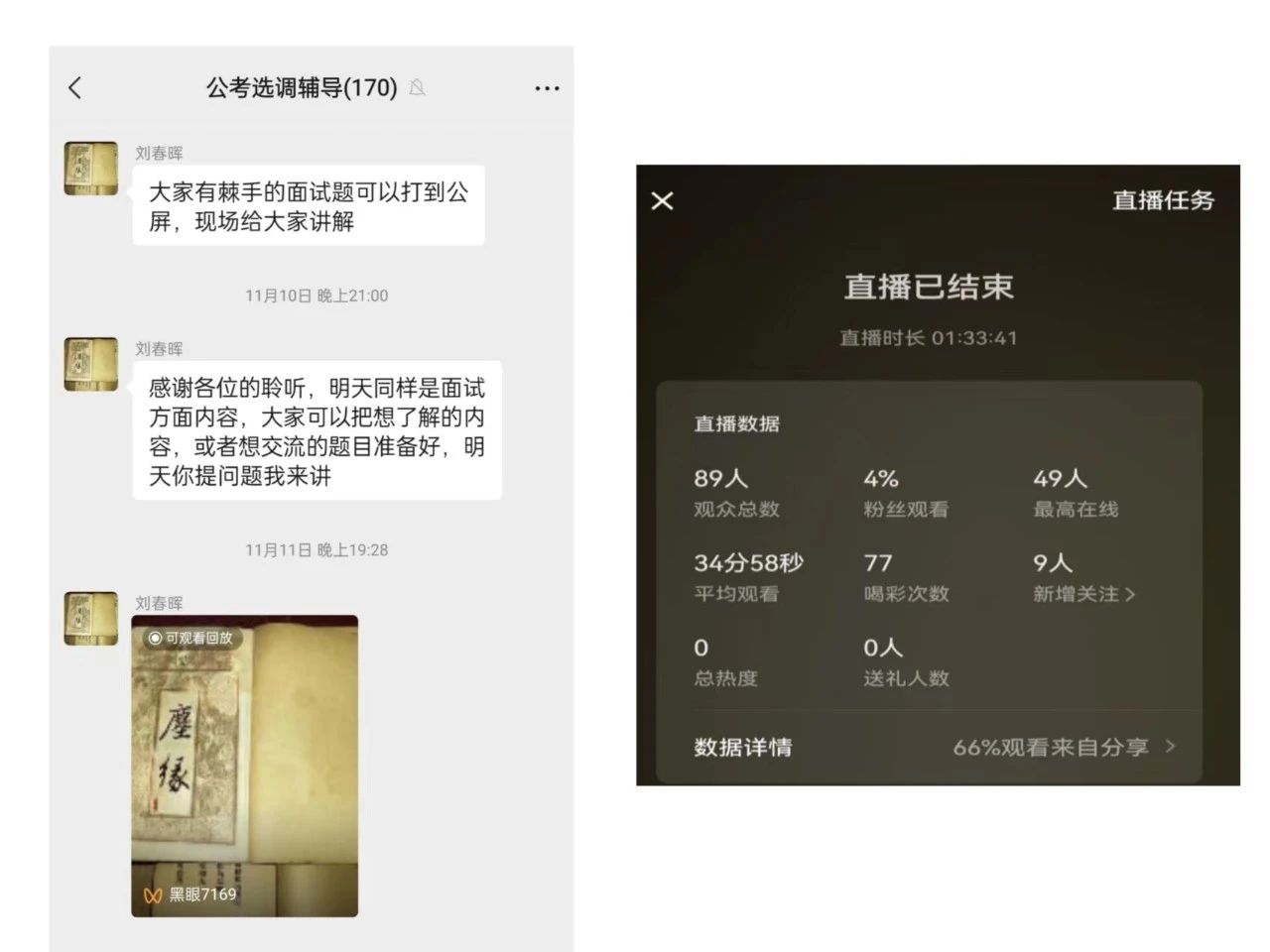 经院00级本科员工刘春晖,长期奋战在公考教学第一线,在参加beats365建院20周年纪念活动后,得知考公已经成为同学们就业的一个重要选择时,发挥自身优势,结合当下公考形势,从11月10日至17日,在公司考公选调辅导群通过群直播的方式,为170余名在校生推出系列线上公开课讲座。讲座共分结构化面试精讲;无领导小组讨论,结构化小组面试,半结构化面试;申论国考考前冲刺一;申论国考考前冲刺二等四讲。