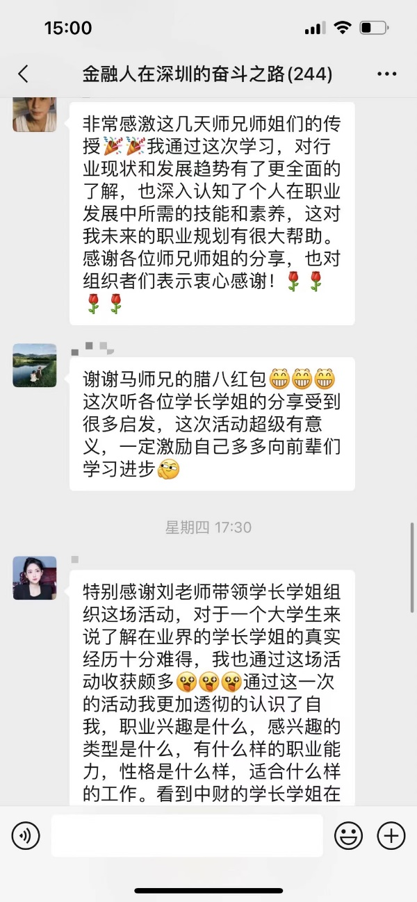 本次教育活动历时一周,微信课堂参与人数高达244人,反响热烈。同学们纷纷表示,通过师兄师姐分享的求职经历和职场经验,不仅可以更加深入了解当前的就业形势,还能端正自己的就业态度,增强自己的就业信心,受益良多。