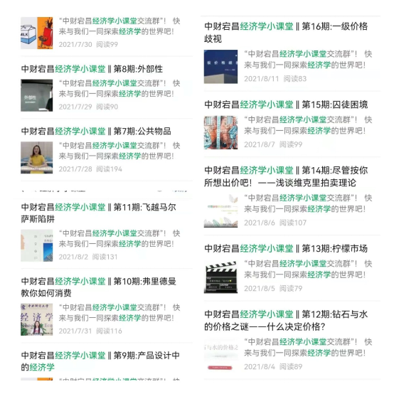 此外,为了增加小课堂的互动性,我们以问卷形式收集了大家的问题和建议,并且还专门建立了“中财宕昌经济学小课堂交流群”供大家进一步学习和交流。每一期的话题都能引发同学们的思考,能够在所学知识的基础上结合实际问题举一反三;遇到不太理解的地方也能够及时提出供大家讨论。除此之外,通过回答问卷中的小问题也能起到及时巩固的效果。每一次的交流互动,都是发现问题与解决问题的过程;同时,也是激发兴趣与汲取力量的过程。