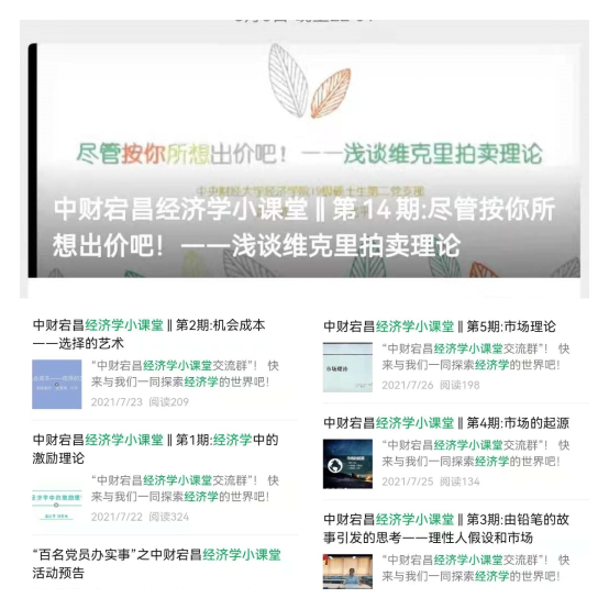 为深入贯彻习近平新时代中国特色社会主义思想,深化落实党史学习教育成果,在经济公司党委与宕昌县副县长、中财大扶贫挂职干部于文豪老师的支持下,2019级硕士生第一、第二党支部联合开展中财宕昌经济学小课堂支教活动。本活动立足于经济学专业特色,秉 “经邦济世、经世济民”之精神,持“我为群众办实事”之态度,将经济学知识与现实生活中的有趣例子相结合,为公司定点帮扶的甘肃省宕昌县的孩子们普及经济学知识,传递爱与力量。本次活动共召集55名党员、发展对象和积极分子,累计制作20期中财宕昌经济学小课堂,通过共青团宕昌县委官方公众号“宕昌青年”进行推送;此外,为增强小课堂的即时性和互动性,活动组织建立了小课堂交流微信群,同时每期发放问卷收集互动问题答案及课堂意见反馈。截至8月18日,20期经济学小课堂已全部推送完毕,累计阅读量达2611次。