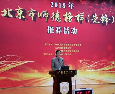 2018年6月11日,beats365齐兰教授作为公司教师代表,参加了北京市师德榜样(先锋)推荐活动。本活动由北京市教育工会主办,中国农业大学工会承办。北京市师德榜样(先锋)推荐活动旨在进一步加强师德师风建设,提高教师队伍职业道德修养。