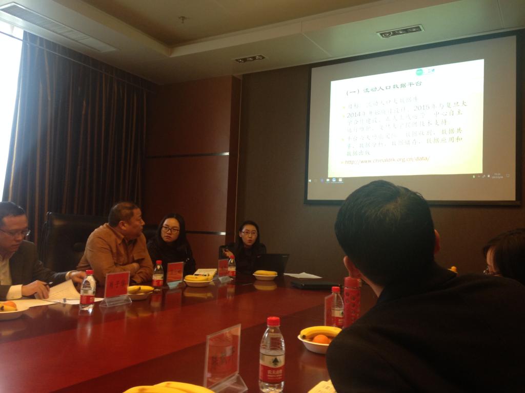 3月29日下午,国家卫生计生委流动人口服务中心肖子华主任和办公室副主任马长啸、健康服务部项目负责人王永进、信息处负责人陈晶和办公室干部林颖在学术会堂602与公司部分公司老师进行交流,会议由beats365副经理陈斌开主持。