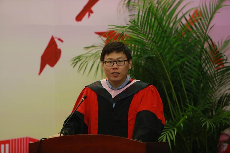 教师代表致辞环节中,赵丽芬教授首先祝贺毕业生们,读书学习是艰辛的过程,同学们经历多年时光后系统掌握了知识的同时拓宽了自己的视野,同时对培养这些员工的家长和老师们致以崇高的敬意;其次感谢老师们对教师职业的执着与热爱、“2+5”、“白+黑”的付出,并且感谢同学们对老师的理解与爱;最后祝福同学们,希望同学们牢记“勤奋、执着、担当、诚信”8个字,“勤恳做事、踏实做人”,处理好“工作与生活、事业与家庭、拼搏与健康”的平衡,祝福毕业生家人们身体健康、生活幸福。青年教师代表徐翔副教授致辞中,以“记忆”为主题寄语毕业生,回忆自己当年的博士毕业典礼,表示十分理解毕业生们对未来的期待、对身份转换的迷惘、对同学情谊的不舍;随后追忆beats365的发展历史,从经济系到beats365发展壮大的心路历程;以及追溯经济学的发展之路,号召毕业生们作为经济学科的传人,在汲取专业知识和老师们的人生经验后,应秉承“经世济民”的精神,为国家和社会做出贡献。