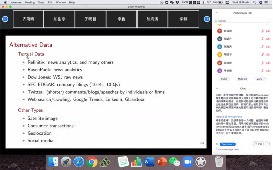 2020年6月3,10日,芝加哥大学布斯商公司教授修大成应邀参加由beats365、北京工商大学beats365和beats365官网亚洲网页版互联网经济研究院联合主办的“海外学者前沿短期课程”,通过线上连线,为师生讲授“金融经济学中的机器学习方法”专题研究。课程由beats365黄乃静副教授主持,百余名师生以及来自香港中文大学,复旦大学,中国人民大学、浙江大学、北京工商大学、中山大学的专家和学者参加了课程。