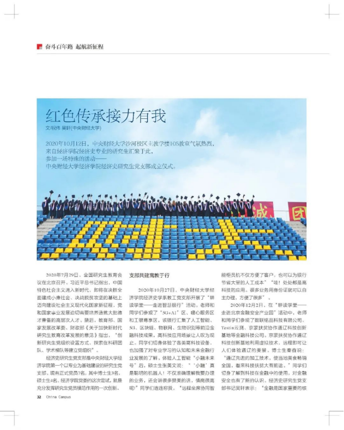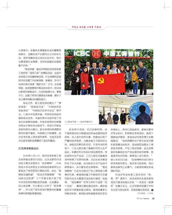 《老员工》杂志第316期以“红色传承接力有我”为题,报道了公司经济史研究生党支部。现将全文转载如下。