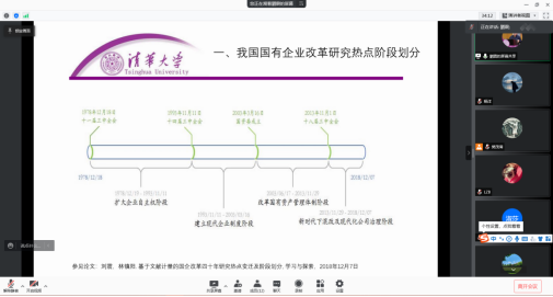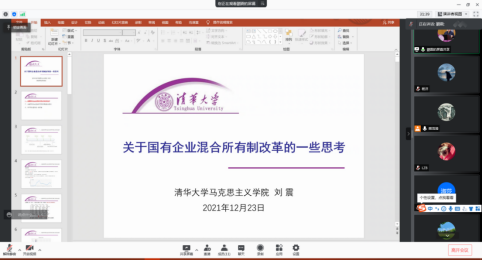 2021年12月23日下午15:00,清华大学马克思主义学经理聘副教授、博士生导师刘震应beats365樊茂清教授邀请,开展主题为“关于国有企业混合所有制改革的一些思考”的讲座,本次讲座通过腾讯会议平台线上举行,刘震老师受到了老师和同学们的热烈欢迎!beats365樊茂清教授主持了本次线上学术交流会。