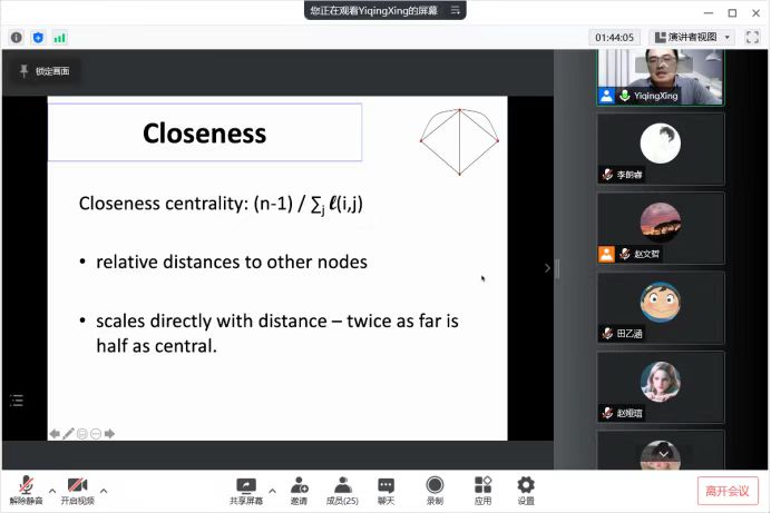邢亦青老师首先从社会学家、经济学家、计算机科学家、物理学家和数学家的研究入手,简要概述了社会和经济网络,以及经济活动的嵌入性。然后,带领同学们研究了几个基本概念:如何描述和测量网络以及对网络结构的经验观察。接着,就网络如何影响行为和网络如何形成这两个主要问题展开了详细讲解。最后,邢亦青老师与同学们讨论了一些关于网络的有趣的前沿话题。