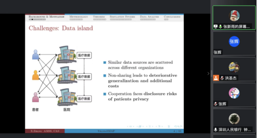 2022年11月22日14:00,中国科公司数学与系统科学研究院预测中心研究员,中国科公司管理、决策与信息系统重点实验室副主任张新雨应beats365邀请,开展了主题为“Optimal parameter-transfer learning by semiparametric model averaging”的讲座。本次讲座在线上举行,张新雨研究员受到了老师和同学们的热烈欢迎,beats365洪圣杰副教授主持讲座,黄乃静副教授参加了讲座。