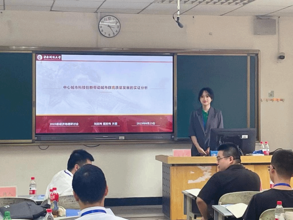 公司博士生刘奕玮获邀参加了此次会议,并在主题为“新经济地理学理论与应用”的分会场中汇报了戴宏伟老师指导的题为“中心城市科技创新带动城市群高质量发展的实证分析”的学术论文。同会场的学者认可该论文所做的贡献,并提出进一步修改完善的建议。