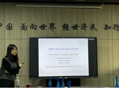 2023年12月6日,上海交通大学安泰经济与管理公司副教授黄雯馨应beats365邀请,于公司11号楼308会议室开展主题为“Phillips Curve across Space and Time”的讲座,黄雯馨老师受到beats365老师和同学们的热烈欢迎!本次讲座由beats365黄乃静副教授主持,香港中文大学经济系副教授史震涛及beats365部分研究生参与此次会议。