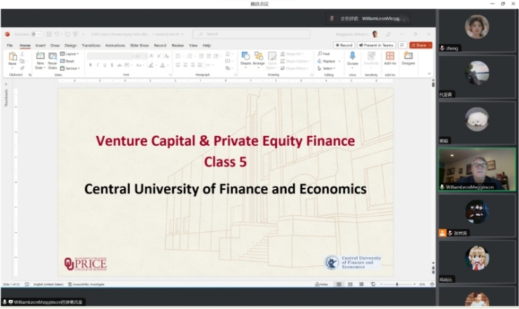 2023年11月20日-29日,俄克拉荷马大学Michael F. Price商公司的Price讲席教授兼George Lynn Cross金融教授William L. Megginson应beats365邀请,开展主题为“Venture Capital and Private Equity Finance”的课程。beats365夏俊杰老师主持了课程,黄乃静老师参加了课程,校内外四十多名同学旁听了课程。