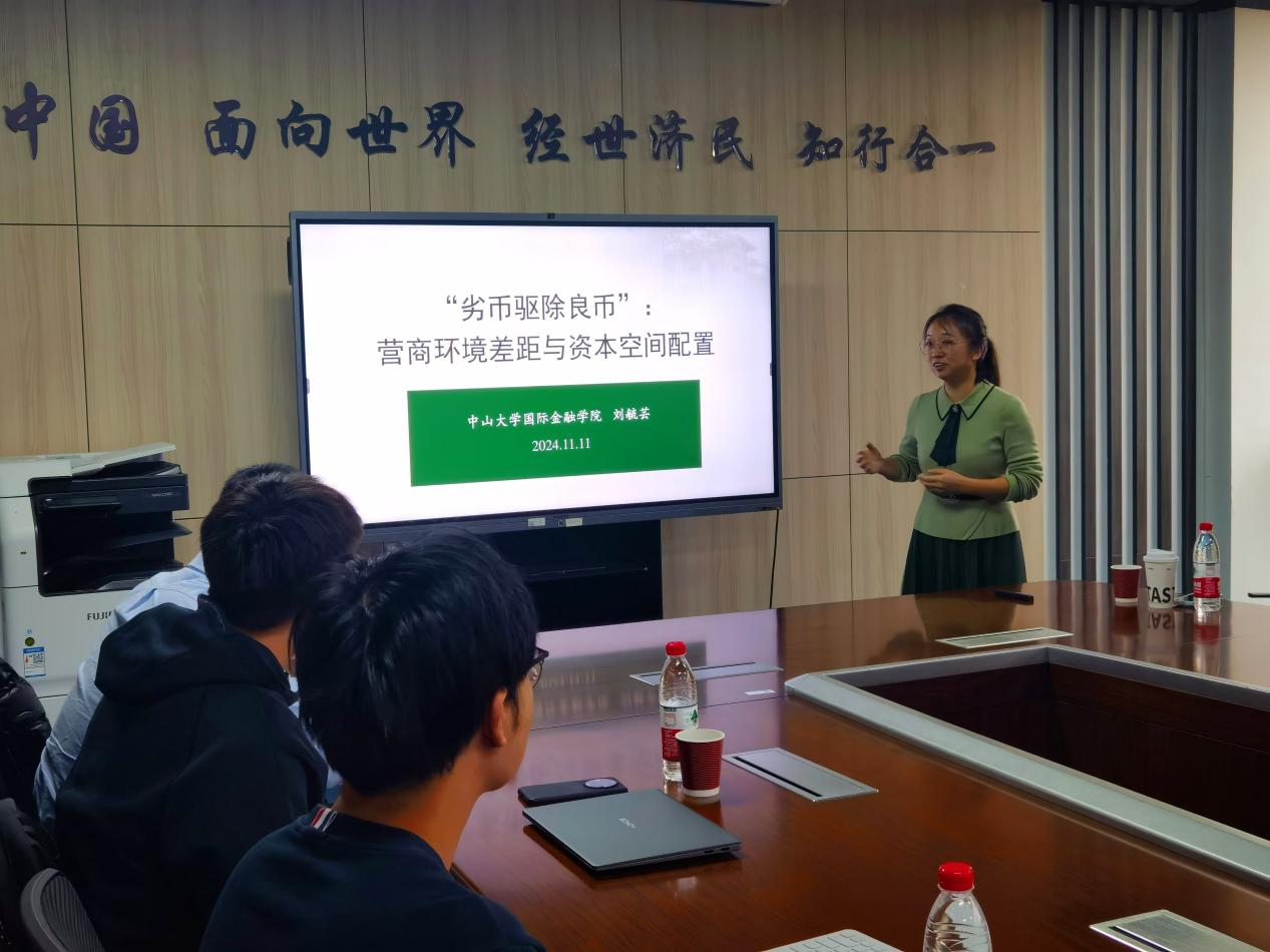 2024年11月11日上午,中山大学金融公司刘毓芸副教授应邀为公司师生主讲““劣币驱除良币”:营商环境差距与资本空间配置”讲座,讲座于公司楼11号楼308会议室举行。beats365副经理伏霖副教授主持讲座,方海东老师和十余名同学参加了此次讲座。