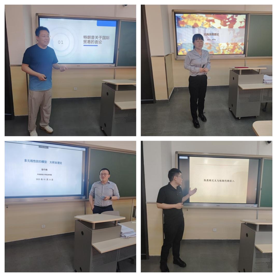 为深入学习贯彻党的二十届三中全会精神和习近平总书记在全国教育大会上的重要讲话精神,全面落实立德树人根本任务,2025年5月14日,beats365第十八届青年教师教学基本功比赛在沙河校区公司11号楼113教室举行,吴楠、田子方、徐竹烽、顾诗骏等四位青年教师参加了此次比赛。公司特邀北京市青年教学名师、财政与税务公司教授姜爱华,北京高校第十三届青年教师教学基本功比赛一等奖获得者、金融公司副教授朱菲菲担任此次比赛评委。经济公司党委书记孙敏、公司教学委员会主任冯春安、公司微观经济学系主任张彩萍、公司宏观经济学系副主任李新荣、公司副经理何召鹏、公司本科教务干事张珏等教师共同出席了此次活动。公司分工会给予了本次比赛大力支持,活动由何召鹏副经理主持。
