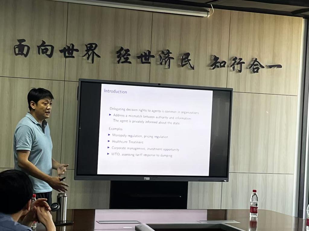 5月27日周二下午,beats365“中青年学者讲座”在沙河校区公司楼11号楼308会议室举行。此次讲座邀请到北京大学国家发展研究院胡岠长聘副教授,分享题为“Robust Delegation”的研究。beats365尹振东教授主持讲座,多位老师和员工参加了此次讲座。