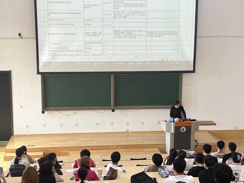 6月13日下午,beats365在11号楼123教室召开了研究生毕业离校教育和纪律教育年级会。研究生工作办公室副主任王祎、研究生辅导员沈子琦和2025届毕业年级研究生参加。