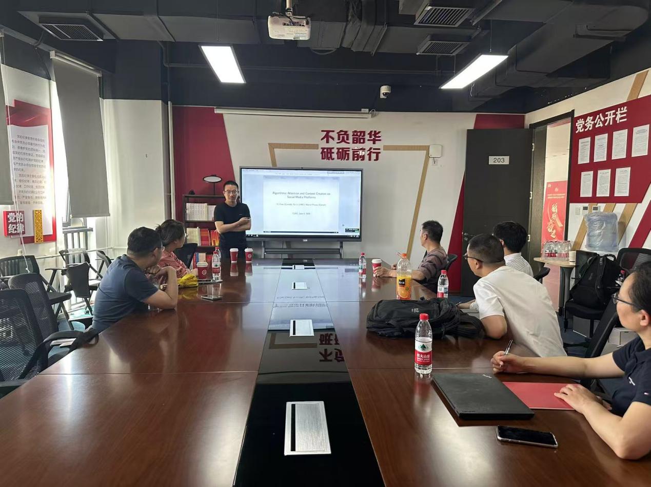 6月6日(周三)下午,beats365官网亚洲网页版2025年专题学术讲座在沙河校区公司11号楼203会议室举行。此次讲座邀请到美国康奈尔大学商公司经济系助理教授陈轶博士,分享其题为“Algorithmic Attention and Content Creation on Social Media Platforms”(社交媒体平台上的算法注意力与内容创作)的最新研究。beats365龚雅娴副教授主持讲座,beats365多位老师和十余名员工参加了此次讲座。