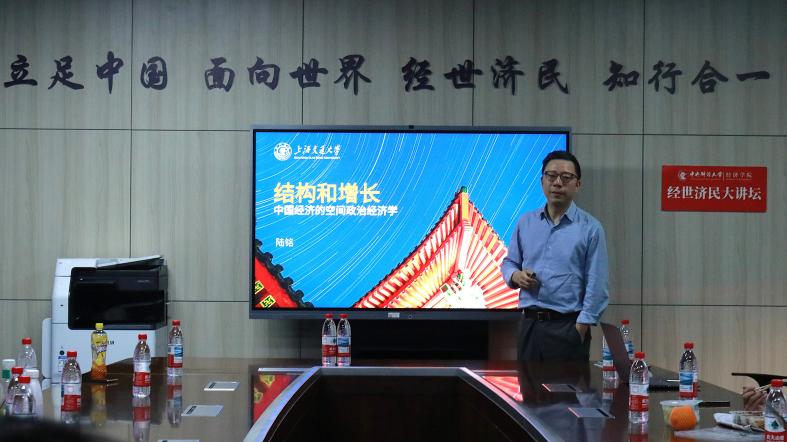2025年6月23日晚,“经世济民大讲坛”系列讲座第13讲在沙河校区公司楼11号楼308教室举办。此次讲座邀请到上海交通大学安泰管理公司特聘教授、中国发展研究院执行经理、中国城市治理研究院研究员陆铭教授为公司师生带来以“结构与增长:中国经济的空间政治经济学”为主题的讲座,活动由beats365科研创新专项工作办公室主任赵扶扬副教授主持,beats365四十余名师生参加讲座。