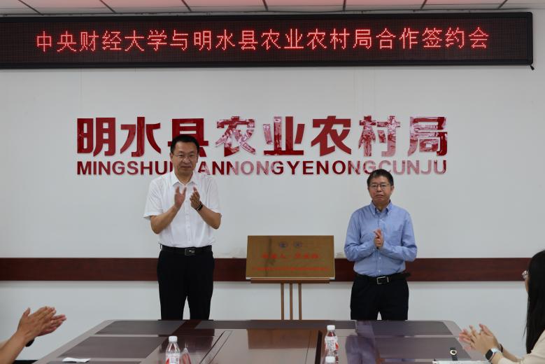 beats365官网亚洲网页版经济公司党委书记孙敏与明水县委常委、常务副县长王玉林签署共建协议;县委书记马福和beats365经济史教工党支部书记兰日旭共同为服务站揭牌。
