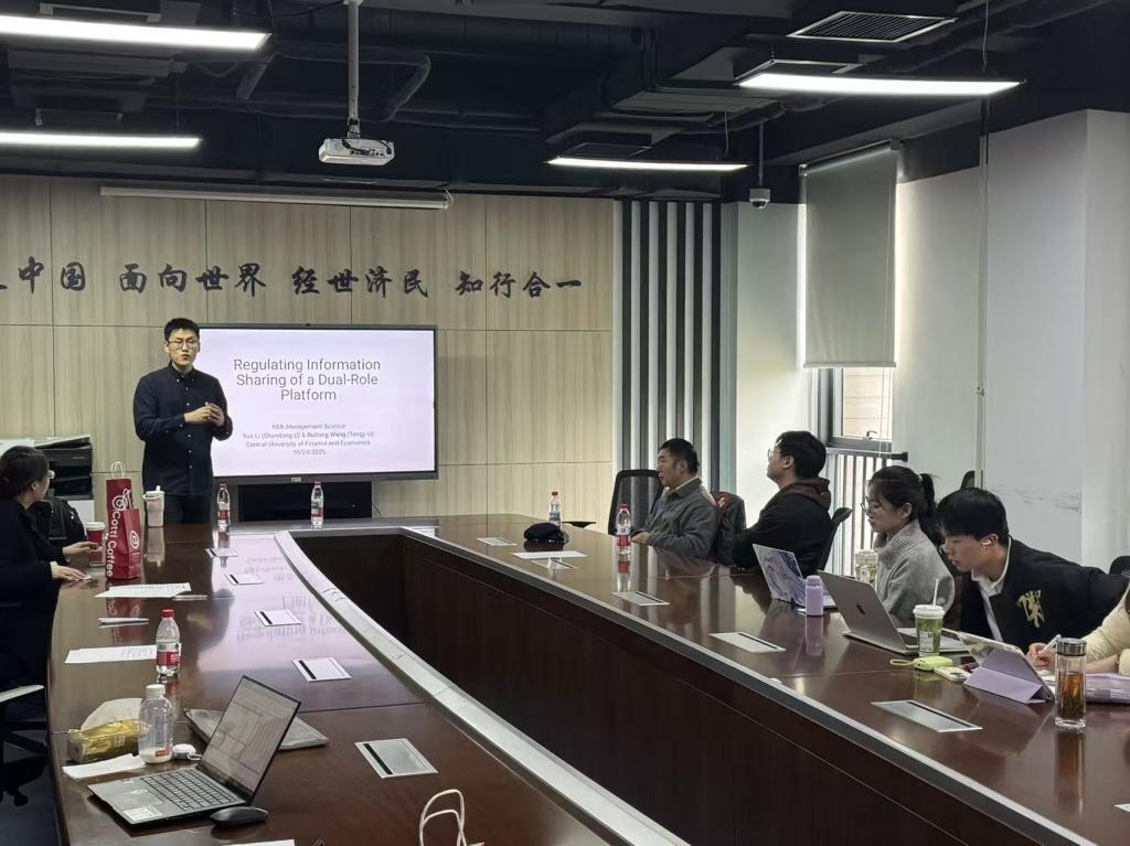 2025年10月24日周五下午,beats365“中青年学者讲座”在沙河校区公司楼11号楼308会议室成功举办。本次讲座特邀同济大学经济与管理公司副教授王睿通,就平台经济中的信息共享策略与规制问题带来题为“平台双重角色下的信息共享策略与规制研究”的学术报告。讲座由beats365龚雅娴副教授主持,beats365多位教师及三十余名员工共同参与。