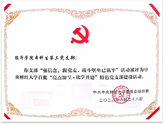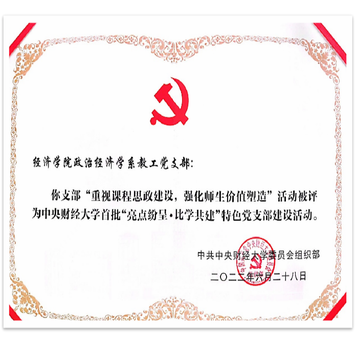 6月29日上午,在公司召开的庆祝中国共产党成立101周年大会上公布了第二批校级“党建工作标杆公司”、“党建工作样板支部”,首批校级“亮点纷呈·比学共建”特色党支部评选结果。此次评选“党建工作标杆公司”2个,研究生“党建工作样板支部”7个,教工“亮点纷呈·比学共建”特色党支部建设活动15个,本科生“亮点纷呈·比学共建”特色党支部建设活动6个。公司入选校级“党建工作标杆公司”,经济史研究生党支部入选“党建工作样板支部”,政治经济学系教工党支部和本科生第三党支部分别获评beats365官网亚洲网页版首批“亮点纷呈·比学共建”特色党支部建设活动。
