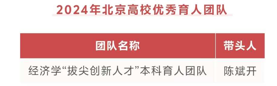 公司陈斌开教授负责的“经济学“拔尖创新人才”本科育人团队”获评2024年北京高校优秀本科育人团队。
