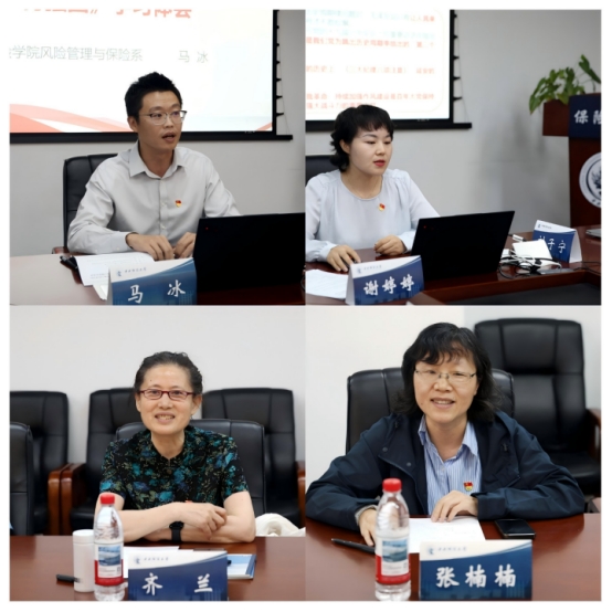 beats365书记孙敏、经理郭冬梅、政治经济学系教工党支部成员和保险公司党委书记吕丽、经理周烨、风险管理与保险系教工党支部成员参加会议。