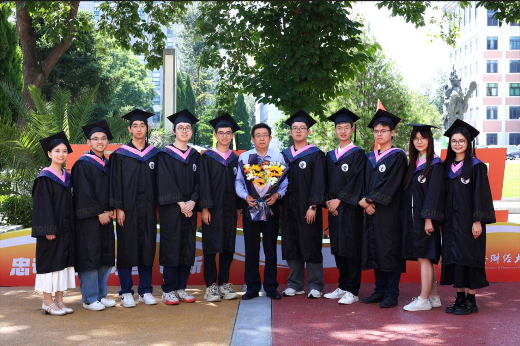 接着,马董事长对基地班毕业生提出了四点期许。第一,厚植中国情怀,扎根中国实践。马董事长指出,经济学拔尖人才一方面应具备宏大的格局和视野,要始终胸怀“国之大者”,紧密对接国家发展战略需求,另一方面必须扎根中国大地,深入洞察中国国情,坚持问题导向,关注社会经济发展的真实痛点、难点,踏实研究。第二,打牢理论根基,涵养思想深度。马董事长特别强调,经济学研究者应当注重研读经典著作,深刻把握经济思想的历史脉络。同时,他勉励同学们要培养终身学习的习惯,密切关注经济学及相关学科的前沿发展,不断更新知识结构,以应对日新月异的学术挑战和现实需求。第三,聚焦研究方向,追求卓越突破。马董事长鼓励同学们在学术研究的道路上,及早锚定自己热爱且具有潜力的研究方向,心无旁骛地深耕下去,在选定的领域做专、做精、做透,最终成为真正不可替代的专家。第四,强化协作精神,共创学术高峰。马董事长着重强调了团队协作精神的重要性。他指出,面对现代经济社会的复杂问题,仅凭个人力量难以取得突破性成果。他殷切期望同学们要树立强烈的团队意识,要学会合作、善于合作,在合作中取长补短,相互支持,共同成长。