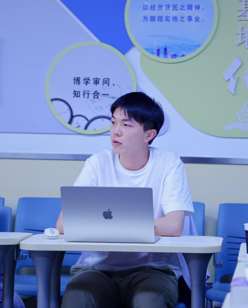 2022级基地班员工代表李哲分享了在基地的成长体会。他建议新生要主动与授课教师、科研导师及学长学姐沟通交流,深度融入基地学术研究共同体,在互帮互助中实现共同成长与进步。