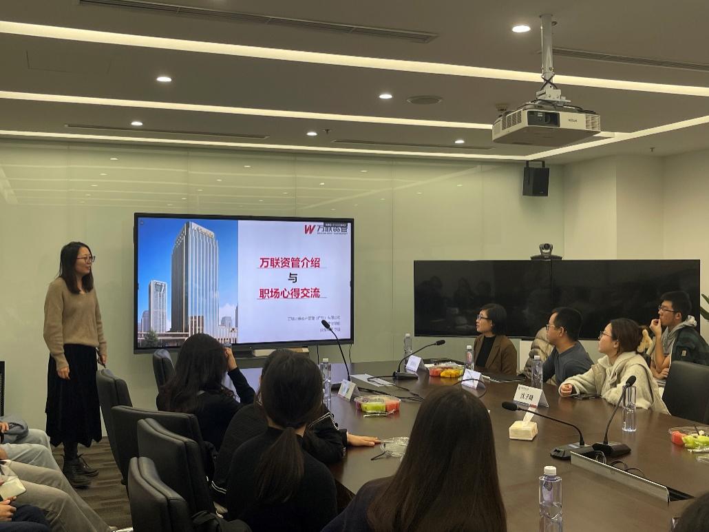 员工徐悦分享了她的求职历程以及在万联证券工作的经历。她围绕券商资管业务范围、与银行理财的区别、个人职业发展路径等话题进行了精彩讲述。在分享末尾,徐悦针对同学们的问题进行了答疑解惑,为同学们提供了宝贵的行业见解和求职指导。